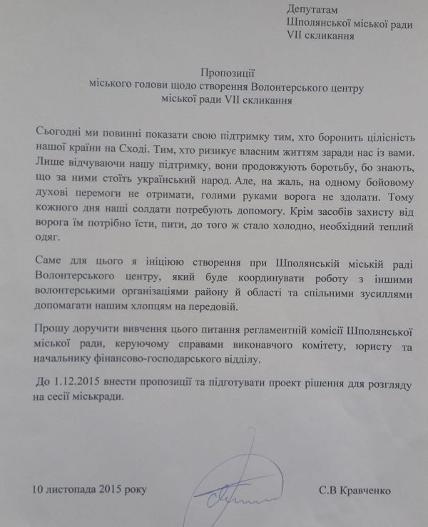Окрім допомоги армії очільник Шполи запропонував депутатам створити у місті Центр безкоштовної юридичної допомоги з надання безоплатних консультацій соціально вразливим категоріям людей.