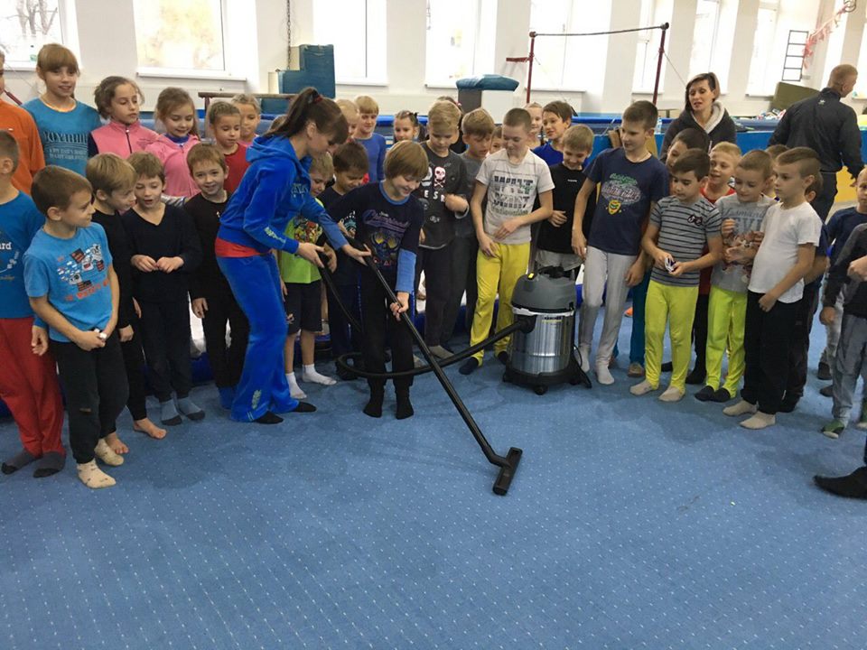 За її словами, гімнастичною залою користуються понад півтисячі діток міста. Щодня прибирання зали проводять прибиральниці, але регулярно відбуваються суботники, коли до прибирання долучаються маленькі спортсмени та їхні батьки. Раніше батькам доводилося приносити власні пилососи, аби прибрати величезну залу. Тепер така проблема відпала.