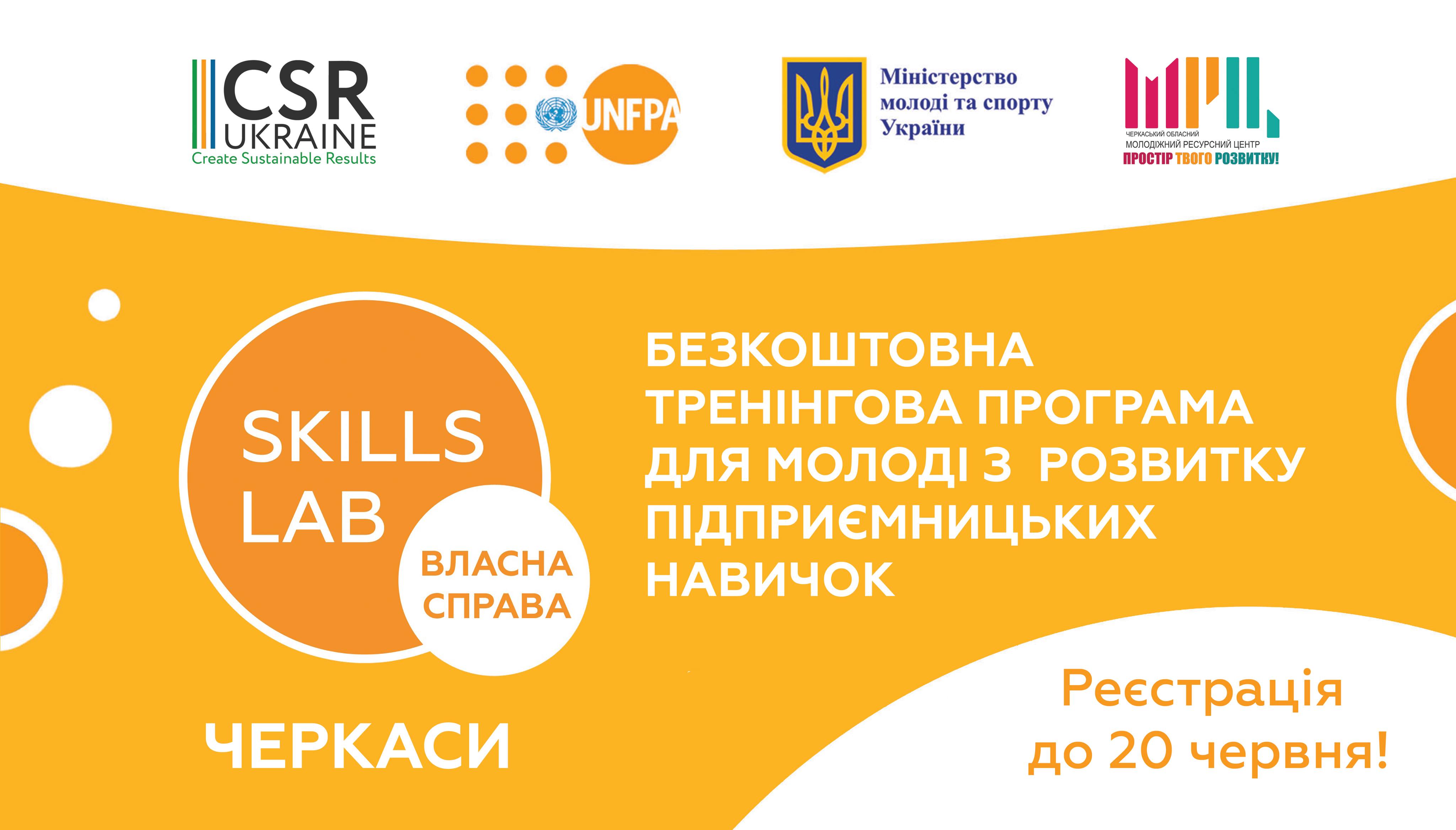 Програма Skills Lab для молоді 16-35 років: студентів та випускників училищ, коледжів та університетів, які проживають у Черкасах та Черкаській області та готові започаткувати власну справу.