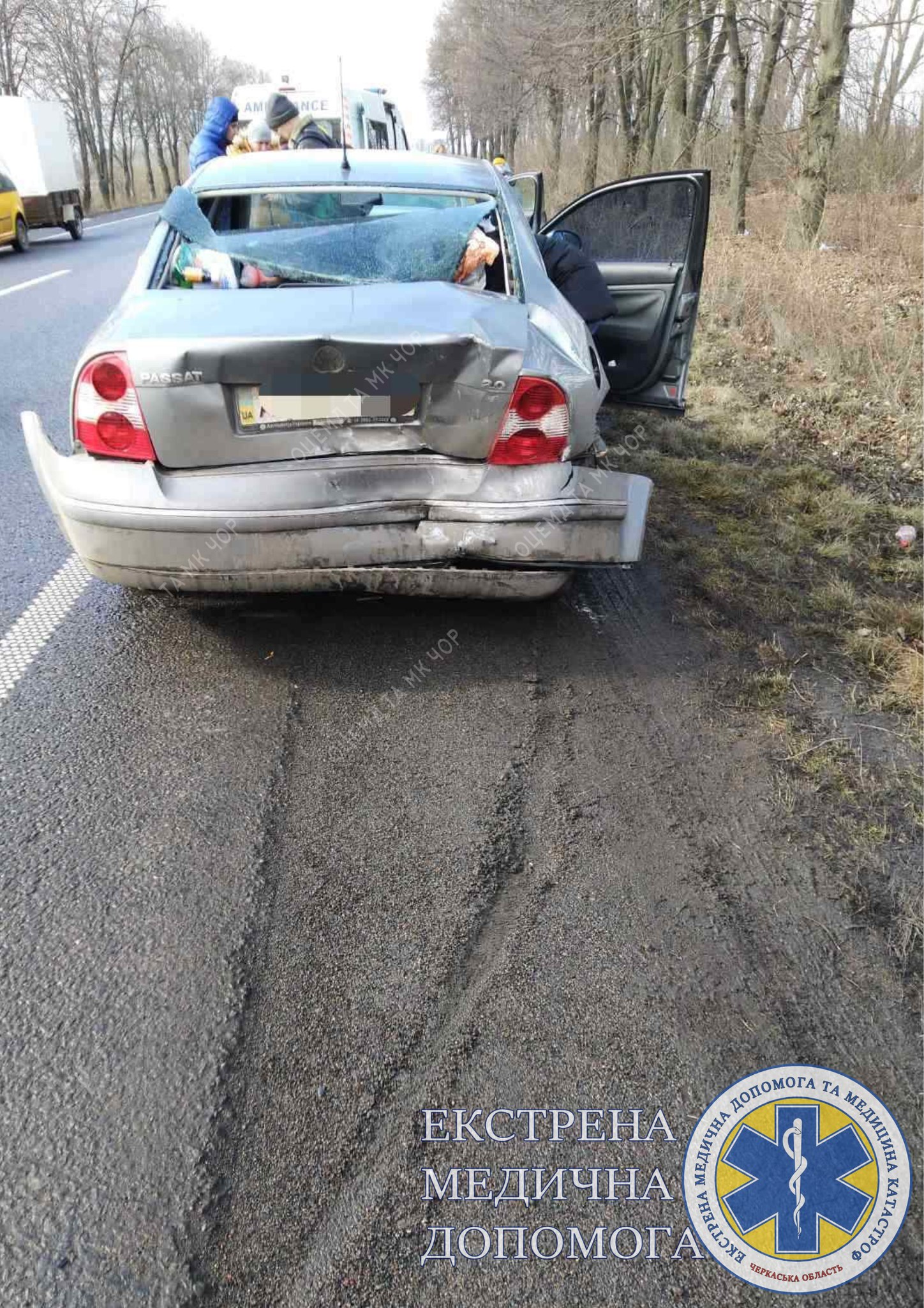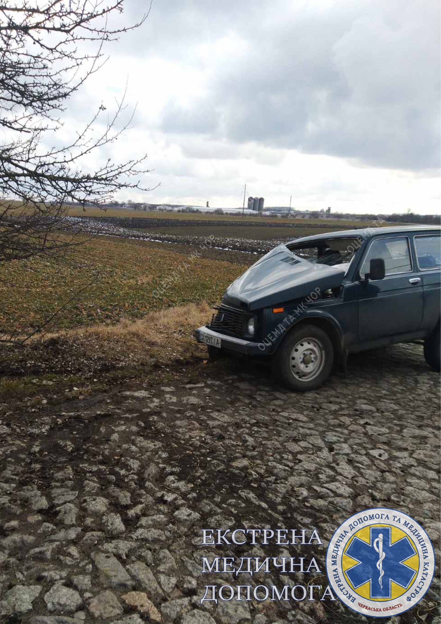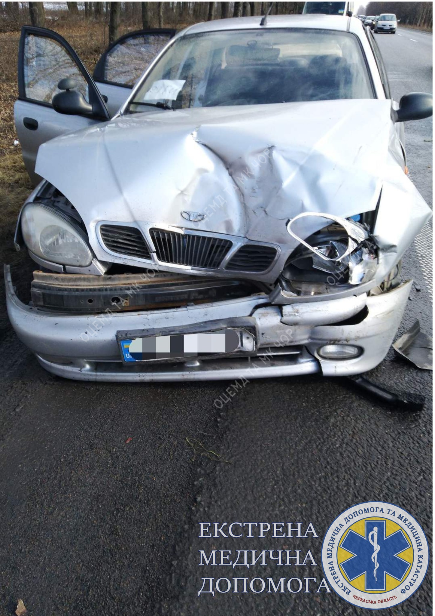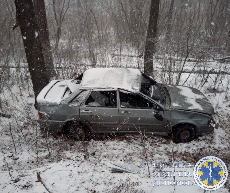 О 22:21 диспетчер прийняла виклик, що в передмісті Черкас з боку Червоної слободи водій автомобіля не впорався з керуванням. Медики швидкої надавали допомогу 35-річному чоловіку. Пацієнта доправили до Черкаської обласної лікарні. Попередньо у нього виявили закриту черепно-мозкову травму та стороннє тіло в оці.