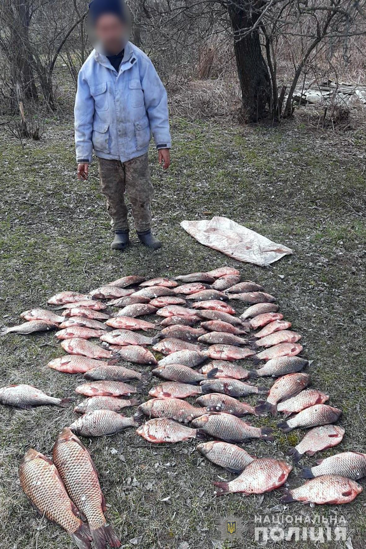Слідчо-оперативна група задокументувала факт незаконного вилову риби та вилучила речові докази, а саме дві месинові сітки та понад сотню одиниць виловленої риби. Сума збитків встановлюється.
