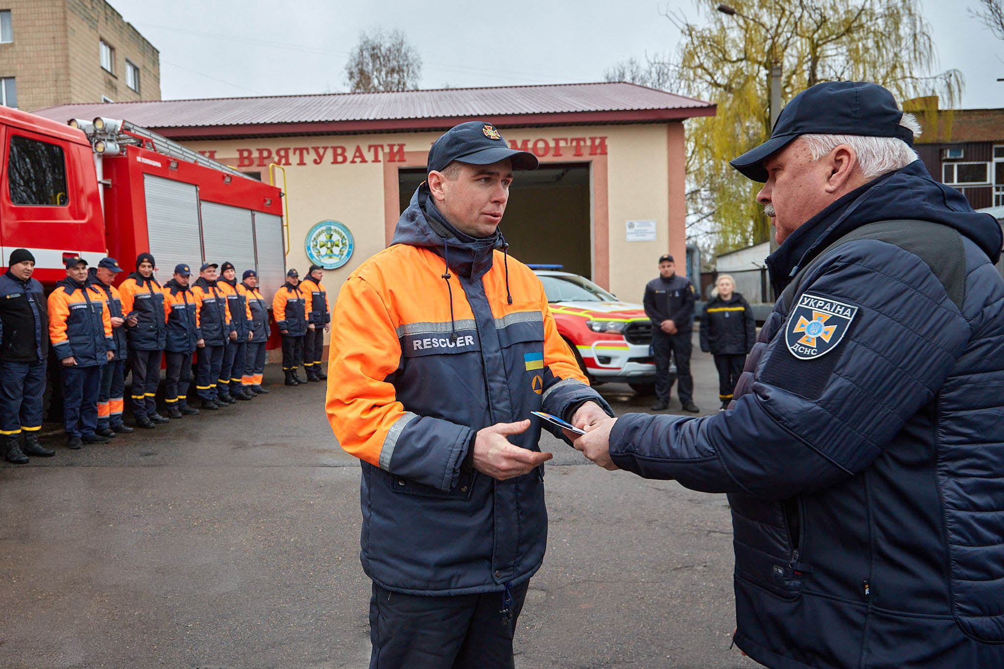 Також під час зібрання начальник інституту Віктор Гвоздь вручив погони сержанта служби цивільного захисту водіям НПРЧ Олександру Степанюку та Олегу Ткаличу.