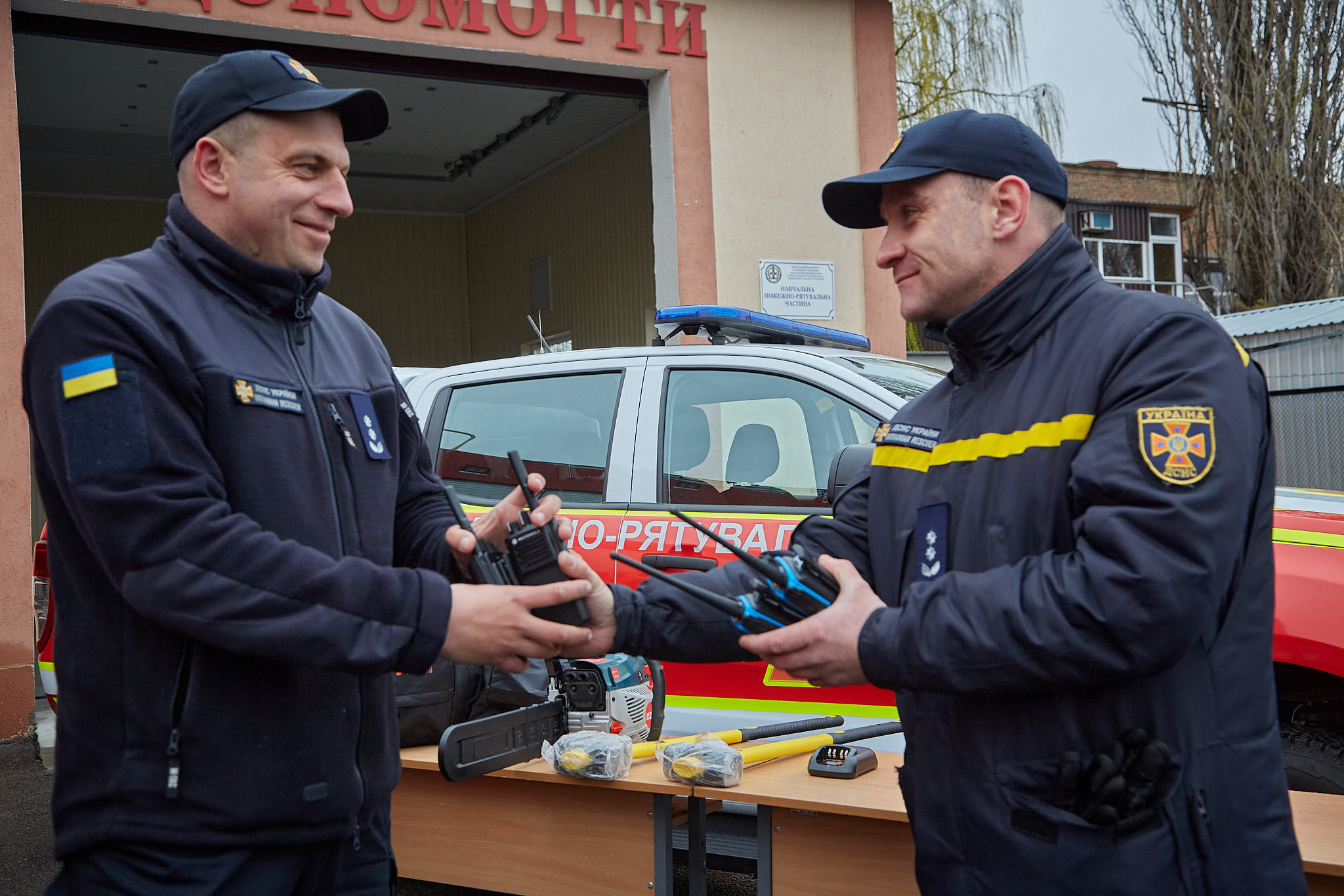 19 квітня колектив навчальної пожежно-рятувальної частини ЧІПБ отримав чотири сучасні цифрові радіостанції, які передав із Італії наш випускник Сергій Полторацький, медичні гнучкі ноші від наших колег із Республіки Туреччини (ТАР Об’єднана платформа «Пошук, рятування медична та гуманітарна допомога), дві бензопили від представників місцевих будівельних організацій та ручні аварійно-рятувальні інструменти від факультетів інституту.