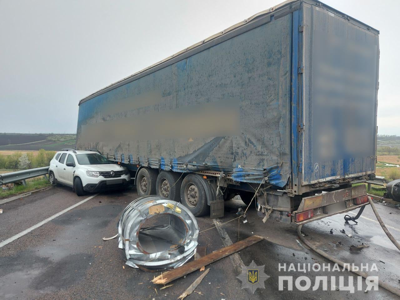 Від удару легковик в'їхав у вантажівку Daf з напівпричепом та Renault Duster.