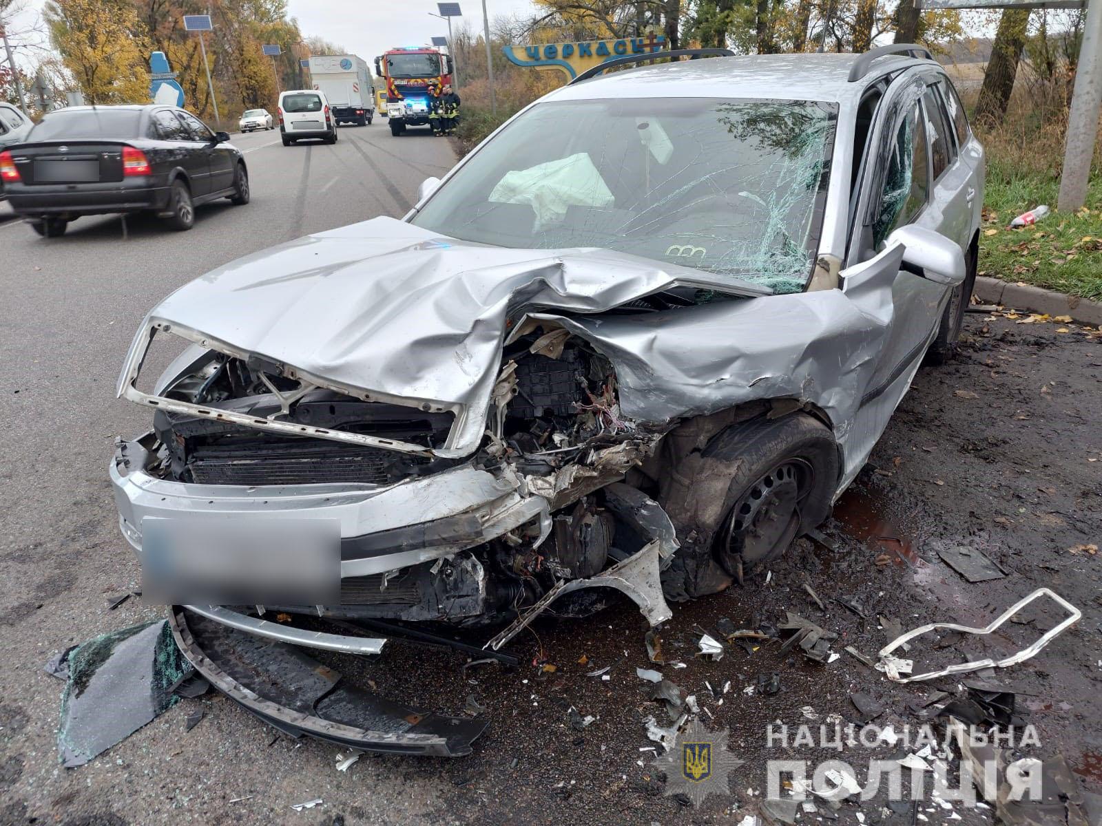 Автопригода сталася 28 жовтня близько 8 години ранку. 44-річний водій автомобіля Skoda Octavia, рухаючись по смілянському шосе в бік міста Сміла, здійснив зіткнення з автомобілем Renault Duster після чого виїхав на зустрічну смугу, де здійснив зіткнення з автомобілем ВАЗ-11193.