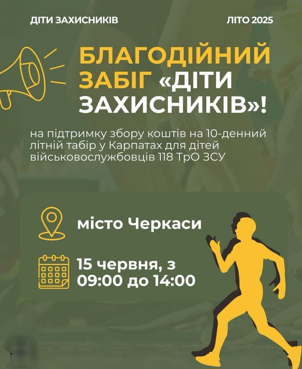 15 червня 2025 року Черкаси стануть містом єдності, вдячності й турботи. У Долині Троянд о 9.00 стартує благодійний забіг “Діти Захисників”.