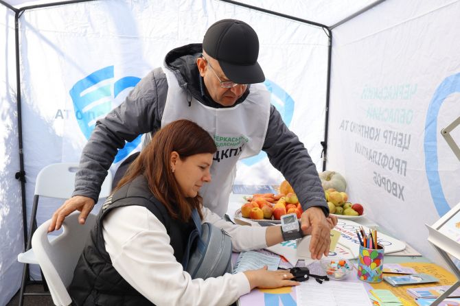Фахівці відділу епіднагляду та профілактики неінфекційних захворювань – Алла Балабан, Анатолій Ілляшенко та Леонід Печеріченко – надали можливість учасникам виміряти артеріальний тиск, визначити індекс маси тіла, отримати консультації з питань здорового харчування. Крім того, вони наголошували на важливості профілактики серцево-судинних, онкологічних і респіраторних захворювань, а також цукрового діабету та необхідності регулярних профілактичних оглядів.