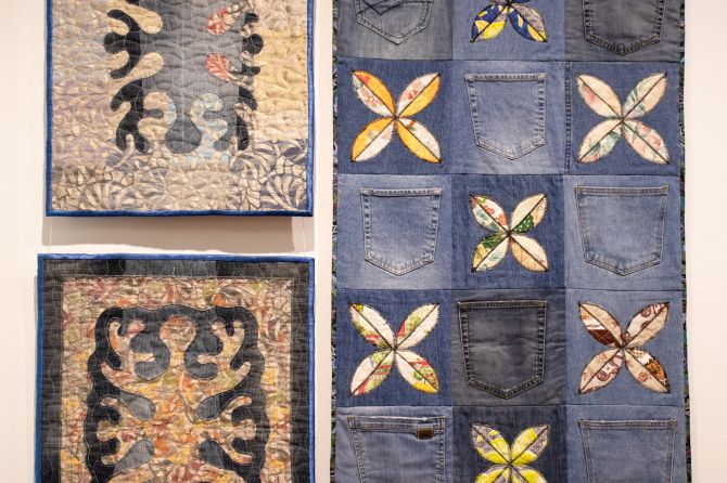 В експозиції представлені різні напрями творчості авторки: паперові витинанки, роботи у техніці англійського шиття, квілти з чоловічих сорочок, джинсових виробів та тканин, врятованих від утилізації.