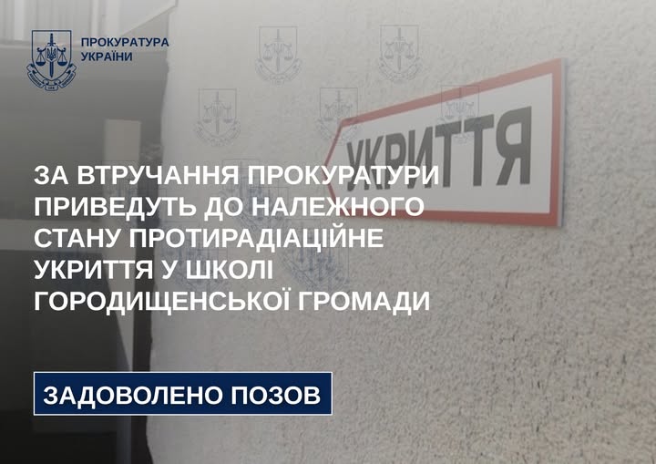 Завдяки втручанню Смілянської окружної прокуратури у Городищенській територіальній громаді приведуть до належного стану протирадіаційне укриття, розташоване в одному з місцевих навчальних закладів.