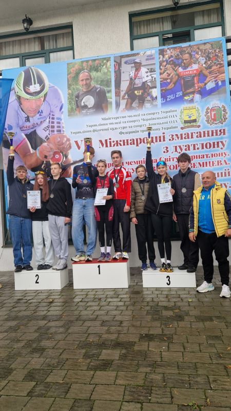 На дистанції 2,5 км біг / 8.0 км велосипед / 1 км біг):