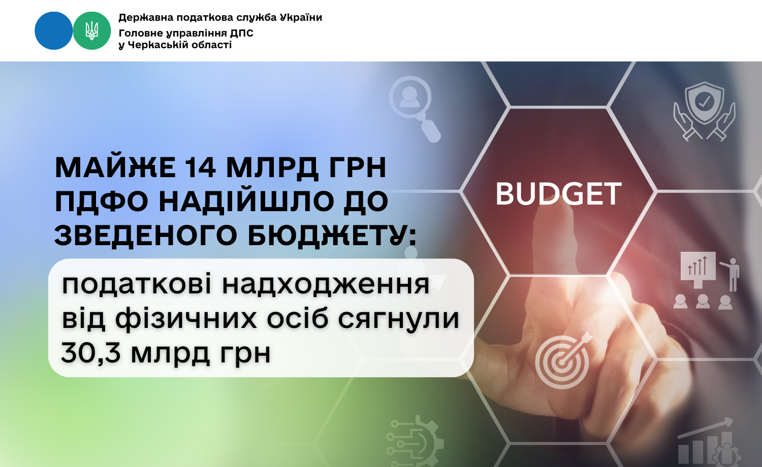 За січень-вересень 2025 року надходження платежів, контроль за надходженням яких покладено на управління оподаткування фізичних осіб ГУ ДПС у Черкаській області, склали 30,3 млрд грн.
