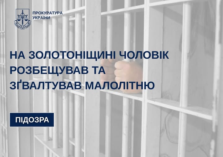 За процесуального керівництва Золотоніської окружної прокуратури повідомлено про підозру 33-річному мешканцю Золотоніського району у зґвалтуванні та розбещенні малолітньої, а також розповсюдженні відеопродукції порнографічного характеру та примушенні створення дитячої порнографії (ч. 4 ст. 152, ч. 2 ст. 156, ч. ч. 2, 3 ст. 301, ч. ч. 1, 4 ст. 301-1 КК України).