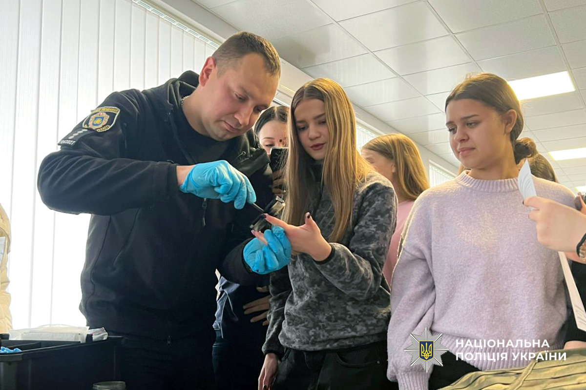 Особливу увагу привернула презентація криміналіста. Він розповів про специфіку своєї роботи та продемонстрував професійно-технічне обладнання, що застосовується під час огляду місць подій. Крім того, школярі відвідали майстер-клас, де побачили, як правильно вилучають слідову інформацію.