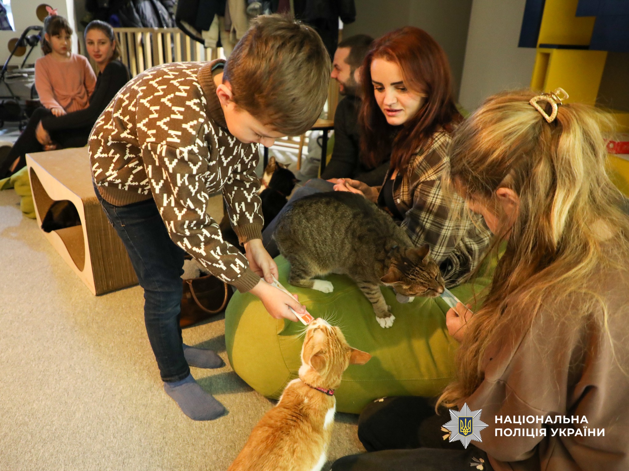 Цьогоріч зустріч доповнив терапевтичний сюрприз — спілкування з котиками, які стали головними пухнастими помічниками у створенні теплої, заспокійливої атмосфери, повідомляє ГУ НП Черкаської області.