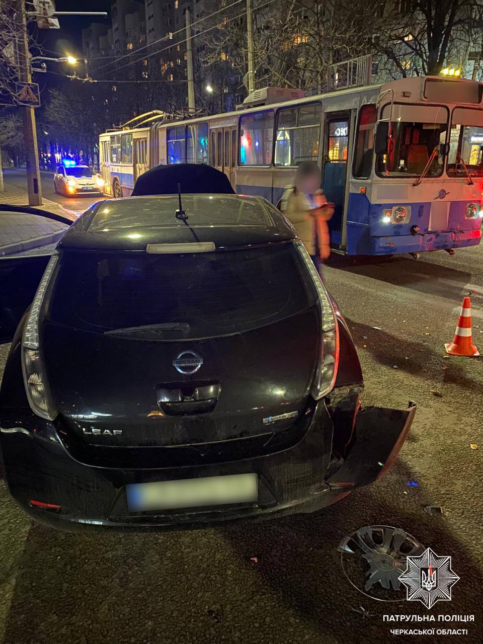 Водійка авто Nissan Lеaf, рухаючись другорядною дорогою, не надала переваги в русі тролейбусу, що рухався головною дорогою, та здійснила з ним зіткнення.