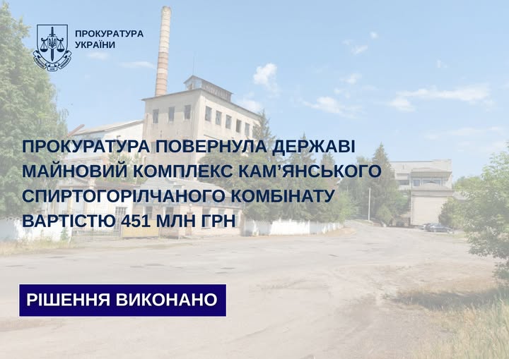 Минулого року Фонд держмайна продав комплекс ДП «Кам’янський спиртогорілчаний комбінат» на електронних торгах. Під час перевірки прокуратура встановила, що покупець не виконав умови договору — зокрема, не погасив заборгованість перед бюджетом.