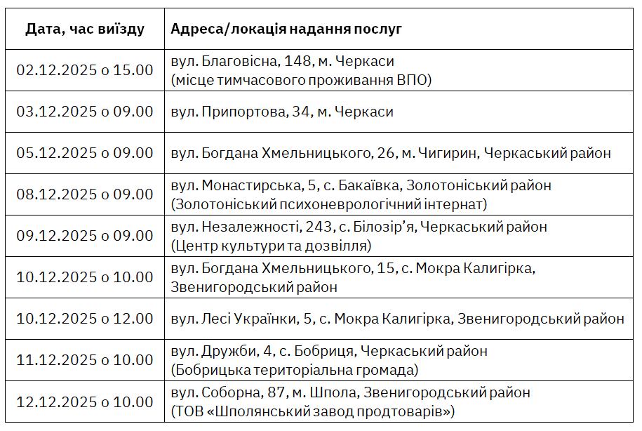 У грудні 2025 року в Черкаській області продовжує роботу мобільна амбулаторія для надання послуг профілактики та скринінгу соціально значущих хвороб: