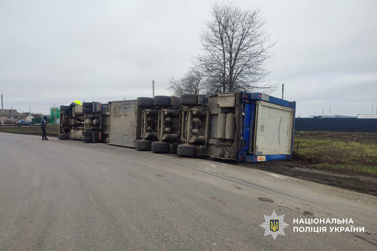 51-річний водій вантажного автомобіля Volvo, рухаючись вулицею Першотравневою, на заокругленій ділянці дороги не впорався з керуванням та перекинувся. Внаслідок ДТП тварини випали з напівпричепа.