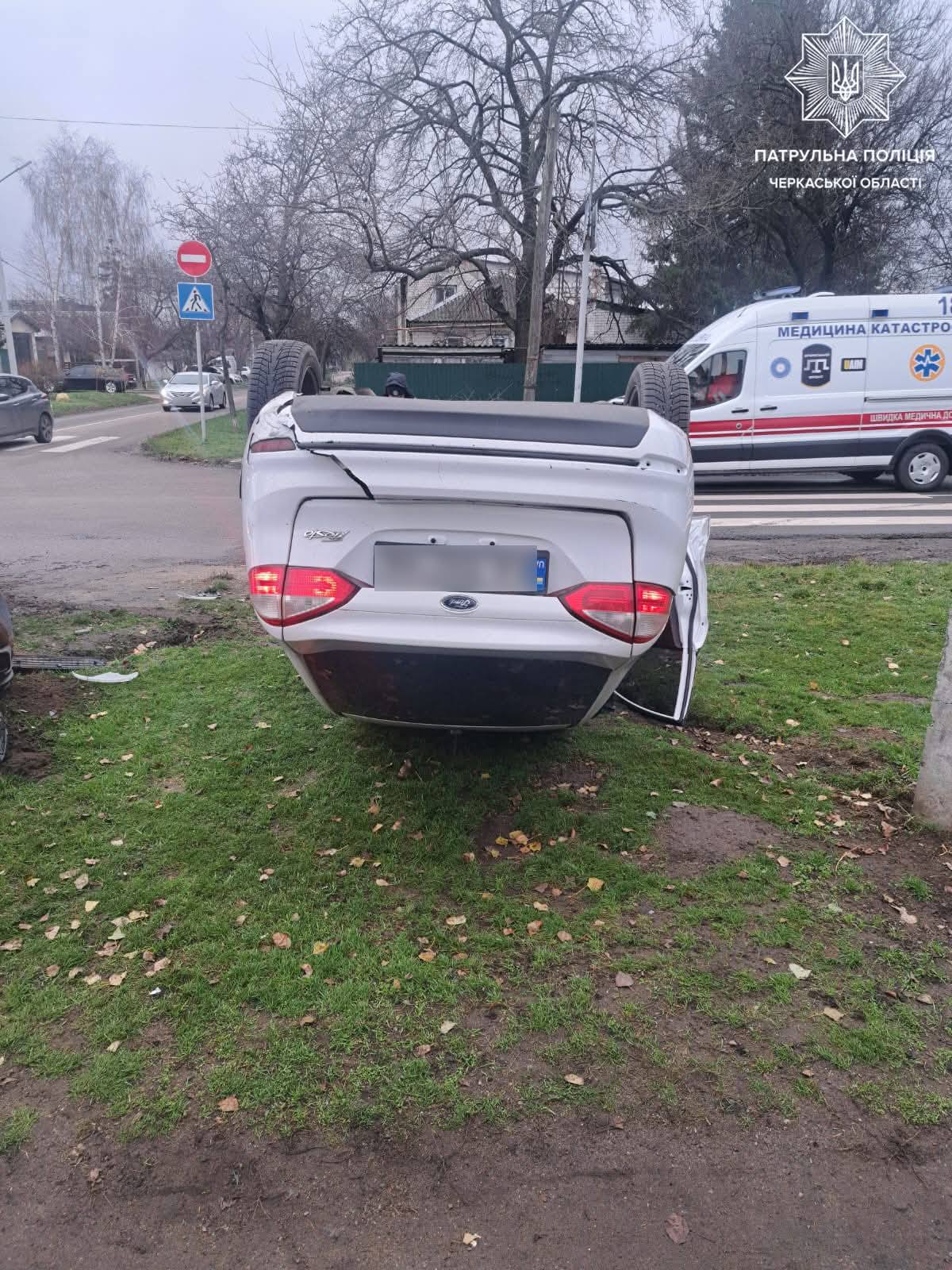 Від удару автомобіль Ford перекинувся. На місці працювали медики та учасники події від шпиталізації відмовилися.