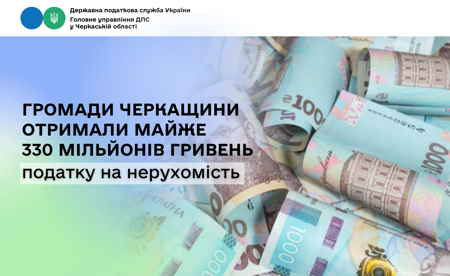 За результатами 11 місяців 2025 року місцеві бюджети Черкащини отримали 328 млн грн податку на нерухомість.