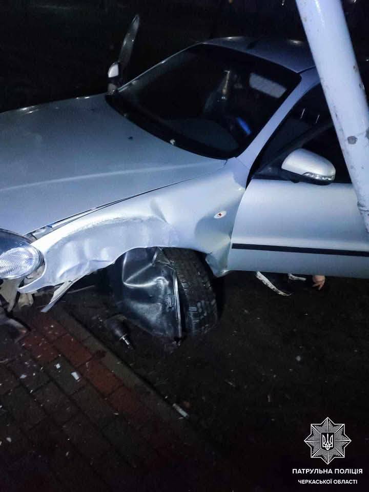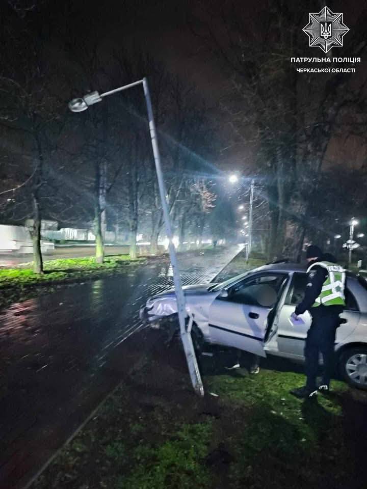 Водій авто ЗАЗ Sens не дотримався безпечної швидкості, не впорався з керуванням та здійснив наїзд на бордюрний камінь та опору вуличного освітлення, інформує пресслужба патрульної поліції Черкаської області.