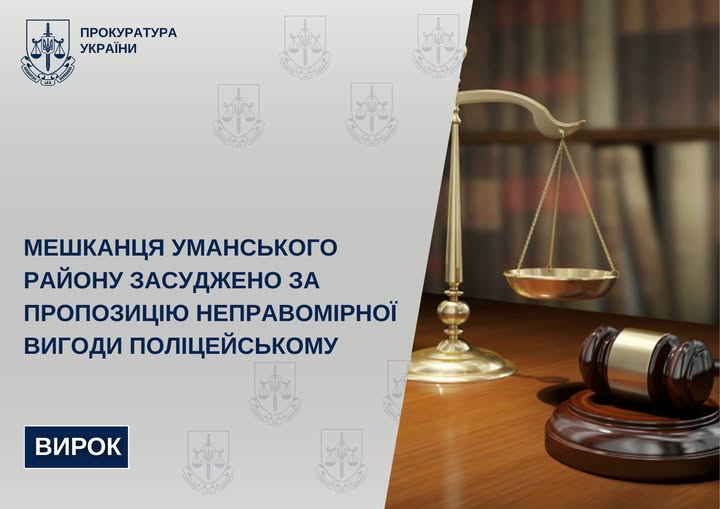 Прокурорами Жашківського відділу Уманської окружної прокуратури підтримано обвинувачення щодо 23-річного жителя Уманського району, якому інкриміновано пропозицію неправомірної вигоди поліцейському (ч. 1 ст. 369 КК України).