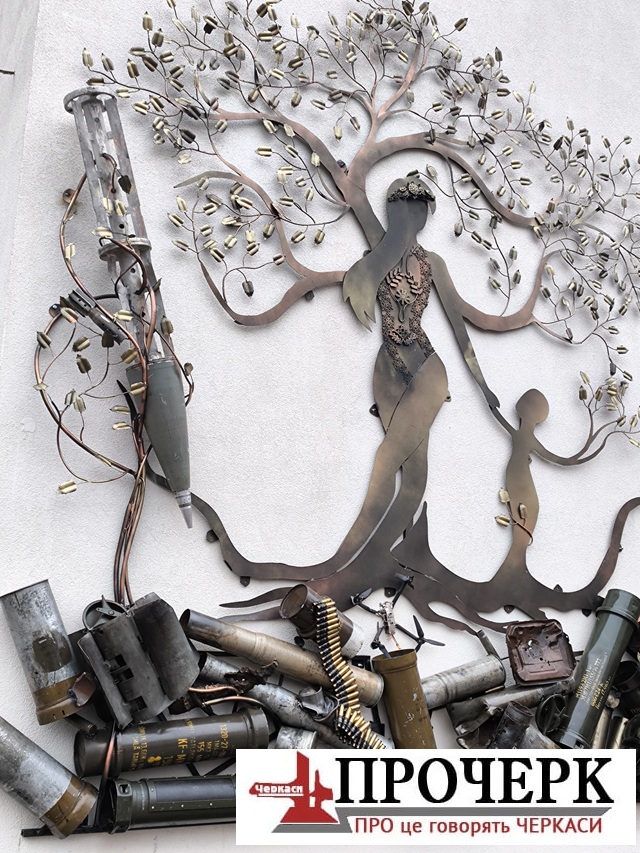 У Черкасах з’явився новий артоб’єкт, виготовлений з артефактів російсько-української війни. Інсталяція має назву «Незламна Україна» та розташована на площі торговельно-розважального центру «Хрещатик-Сіті».