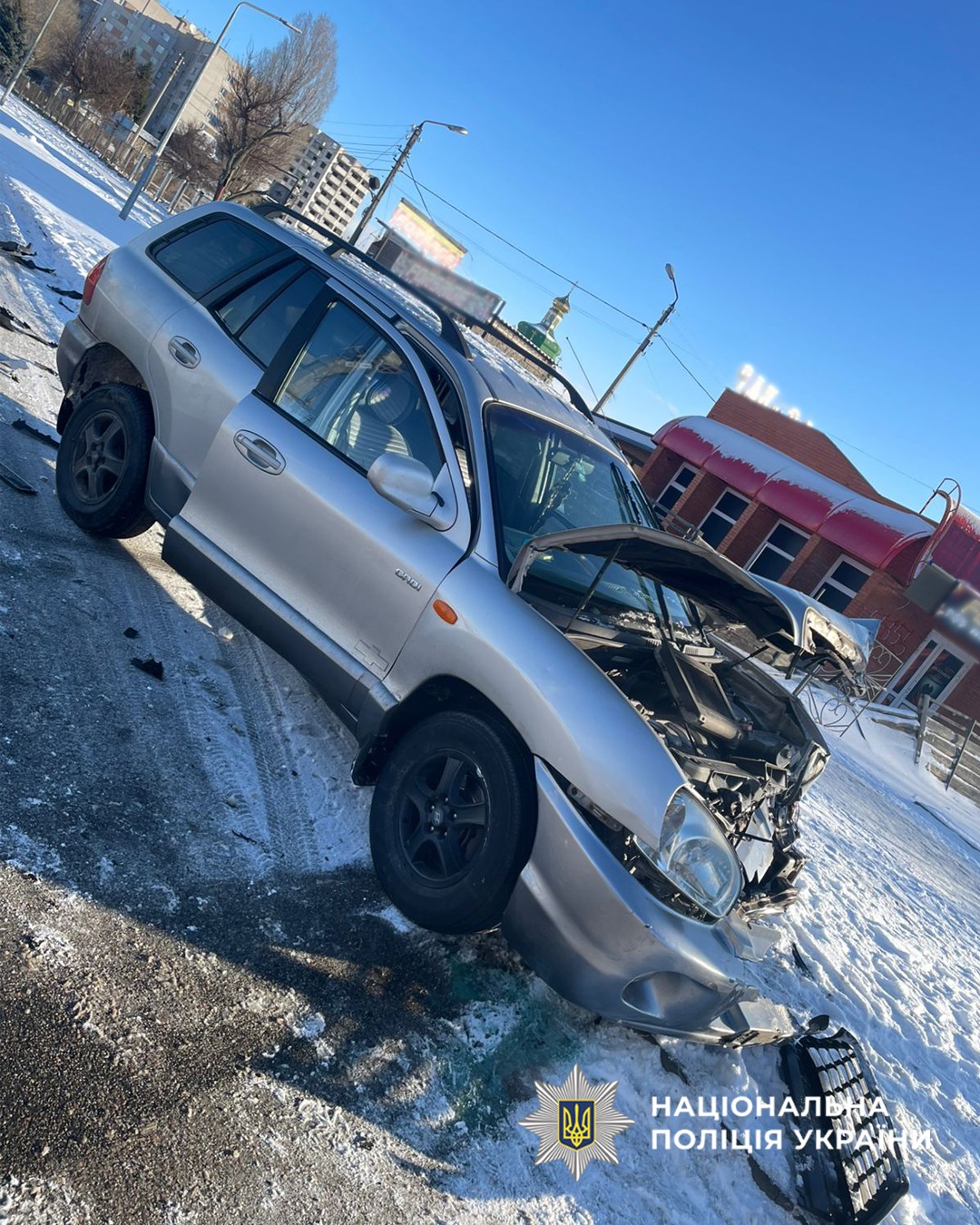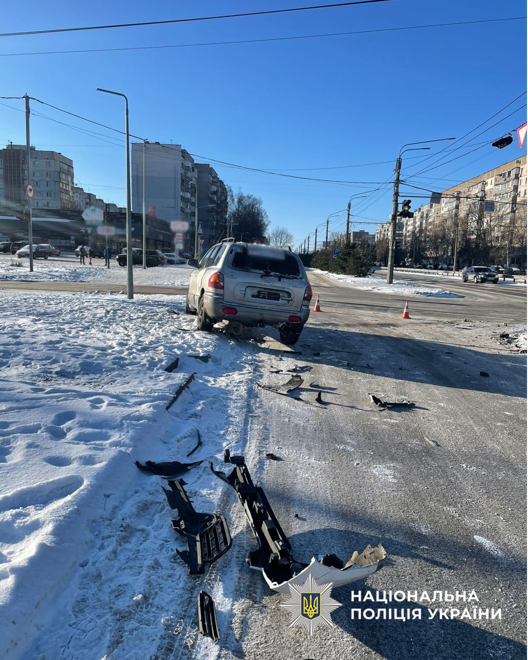 Попередньо, 23-річний водій Hyundai Santa Fe, проїжджаючи регульоване перехрестя з вулиці Віталія Вергая на заборонний сигнал світлофора, зіткнувся з автомобілем Renault Logan.