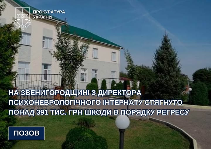 За позовом Звенигородської окружної прокуратури через суд стягнуто з директора психоневрологічного інтернату матеріальну шкоду в сумі понад 391 тис. грн у порядку регресу.
