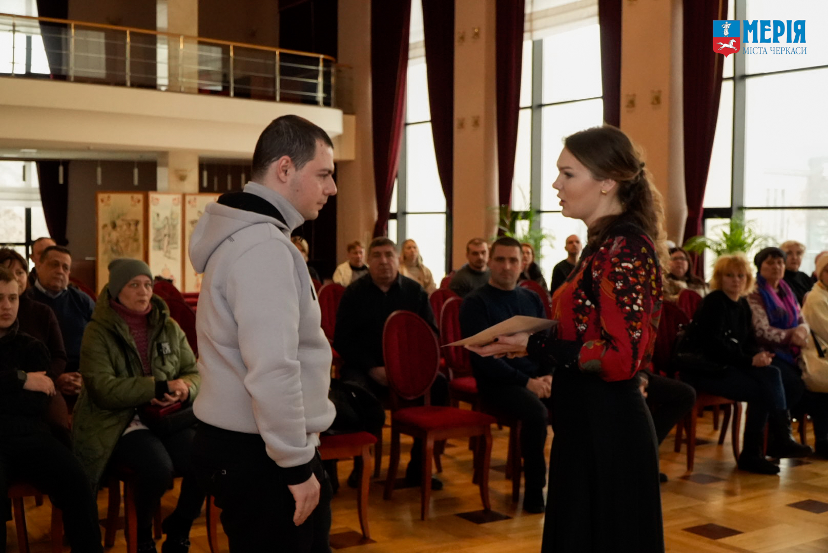 У Черкасах відбулося урочисте вручення державних відзнак військовослужбовцям та родинам загиблих захисників України.