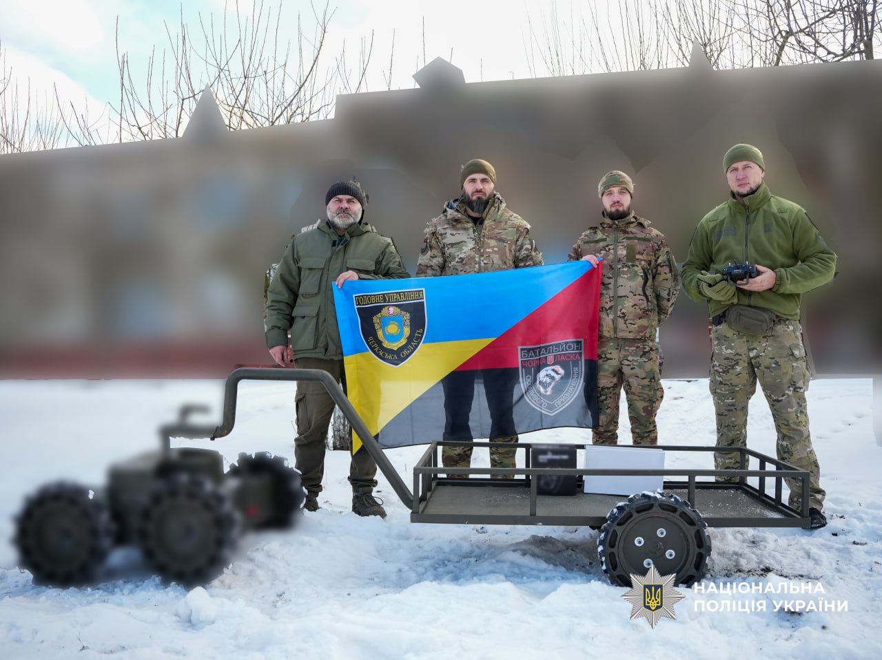 Громадська організація НВР «Холодний Яр», Волонтерський центр – Кропивна та родина загиблого бійця Андрія Синьоока передали наземний роботизований комплекс (НРК) на потреби стрілецького батальйону поліції особливого призначення ГУНП в Черкаській області. Невдовзі цей комплекс доставлять черкаським бійцям на Донецький напрямок.
