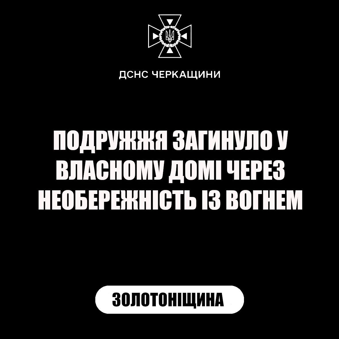 Вранці 8 лютого у селі Шрамківка Золотоніського району сталася пожежа в житловому будинку. На місці події виявлено тіла подружжя — чоловіка 1962 року народження та його дружини 1970 року народження.