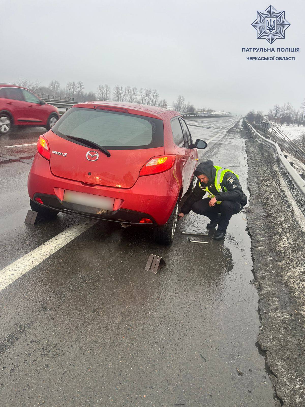 Інспектори помітили автомобіль Mazda, у якого під час руху спустили одразу дві шини, повідомляє пресслужба патрульної поліції Черкаської області.