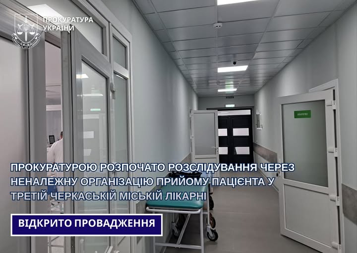 За процесуального керівництва Черкаська окружна прокуратура розпочато досудове розслідування за фактом службової недбалості у Третій Черкаській міській лікарні швидкої медичної допомоги.