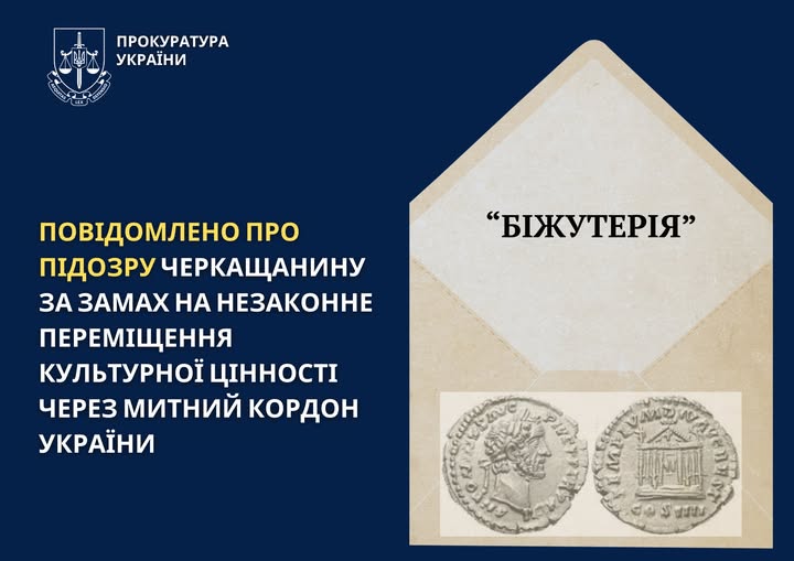 За даними слідства, громадянин України мав намір незаконно продати за кордон монету — денарій (Рим, 158–159 рр., Антонін Пій), яка становить культурну цінність, в обхід встановленої процедури митного контролю та декларування, повідомляє Черкаська обласна прокуратура.