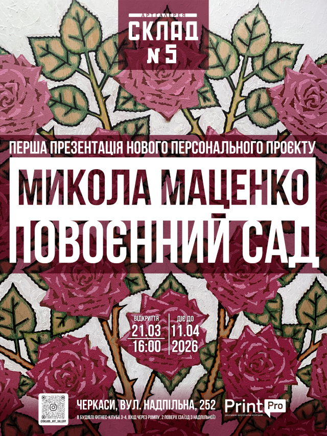 У суботу, 21 березня, о 16:00 в артгалереї Склад №5 відбудеться презентація проєкту українського художника Миколи Маценка «Повоєнний сад».