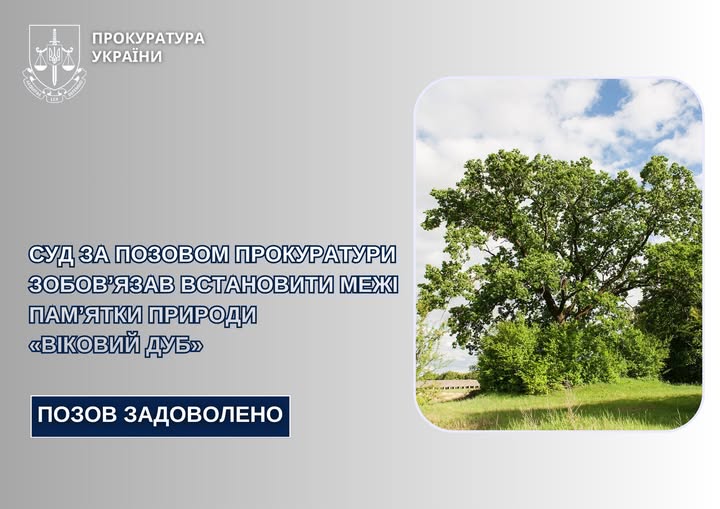 Уманська окружна прокуратура звернулася з позовом до суду про визнання протиправною бездіяльності органу місцевого самоврядування та зобов’язання забезпечити організацію проведення робіт із винесення меж ботанічної пам’ятки природи «Віковий дуб» площею 0,01 га, що розташована в адміністративних Уманського району Черкаської області.