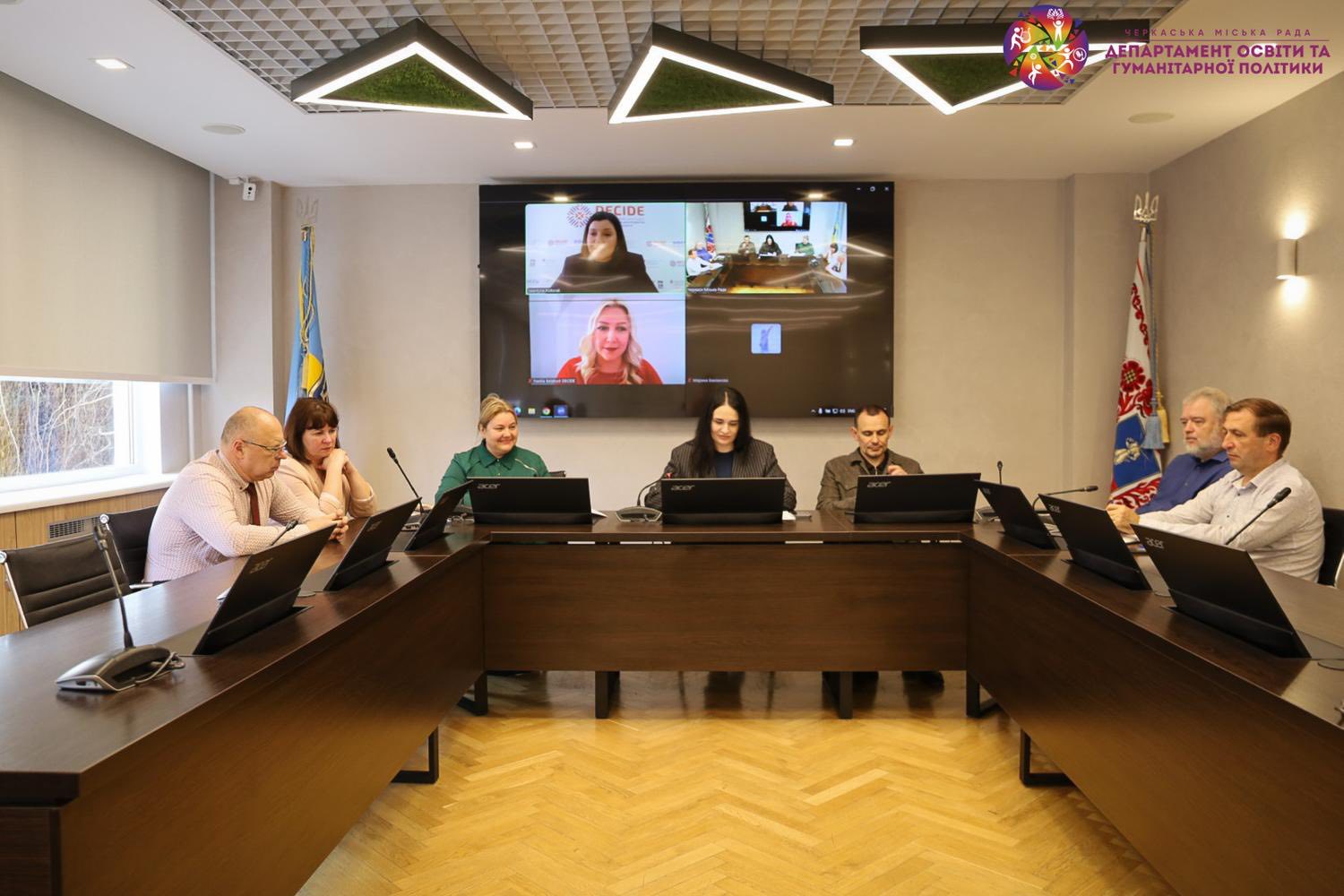 У Черкаській міській раді відбулася онлайн-зустріч представників міської влади та громадської організації «Розвиток громадянських компетентностей в Україні». Захід організували в межах реалізації Швейцарсько-українського проєкту DECIDE - «Децентралізація для розвитку демократичної освіти».