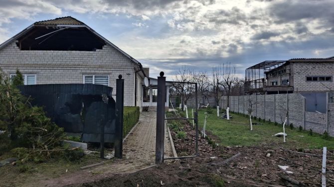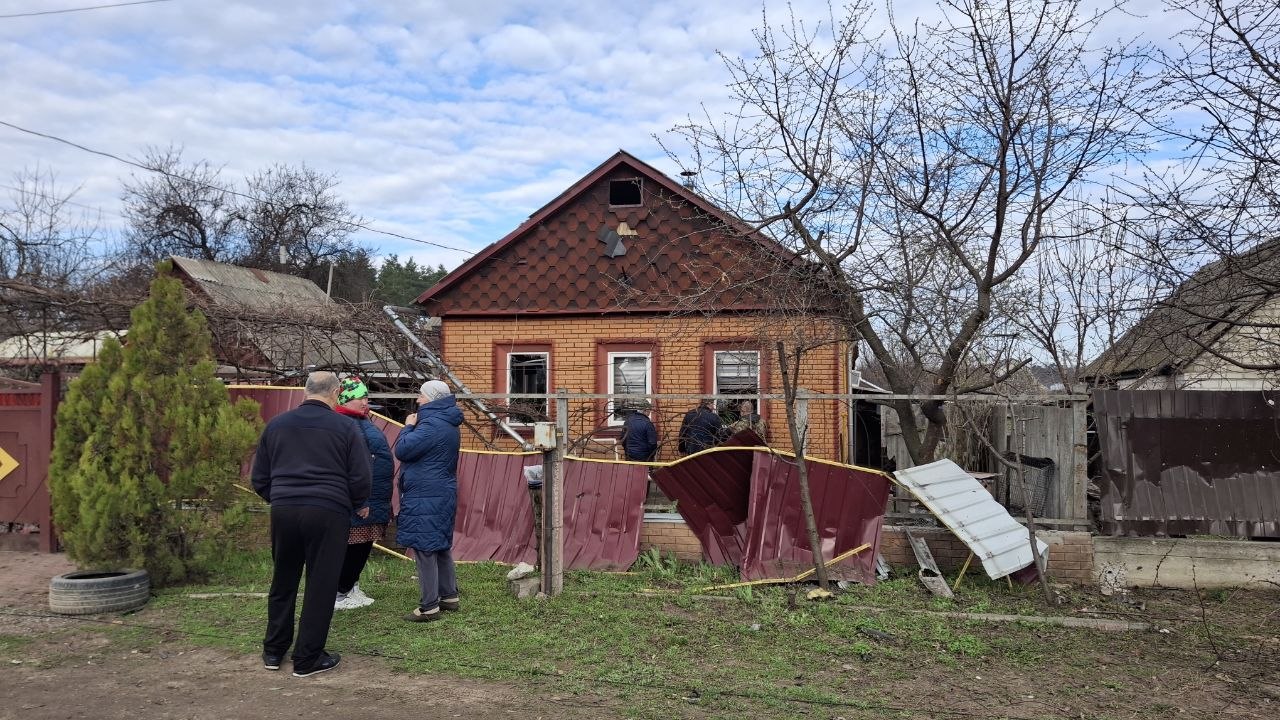 Навпроти подвір'я Василя Черненка – будинок біля якого впав безпілотник, нині на його місці вирва. У господарів зруйнований паркан, вибиті двері, вікна та пошкоджено фронтон, тобто фасад будинку під дахом. Два роки тому з Одещини до батьків переїхала з дитиною Карина Жаркова, тут шукала безпечного місця.