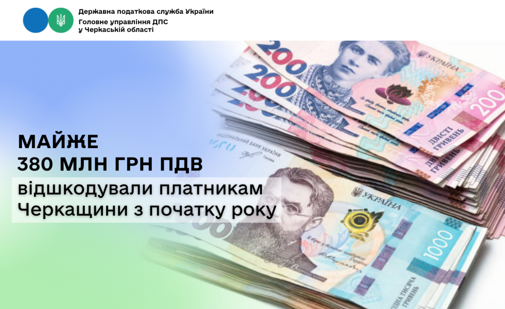 Протягом січня – березня 2026 року платники Черкащини заявили до відшкодування на розрахункові рахунки 372,1 млн грн ПДВ. Порівняно з аналогічним періодом минулого року цей показник збільшився на 26,2 млн грн.