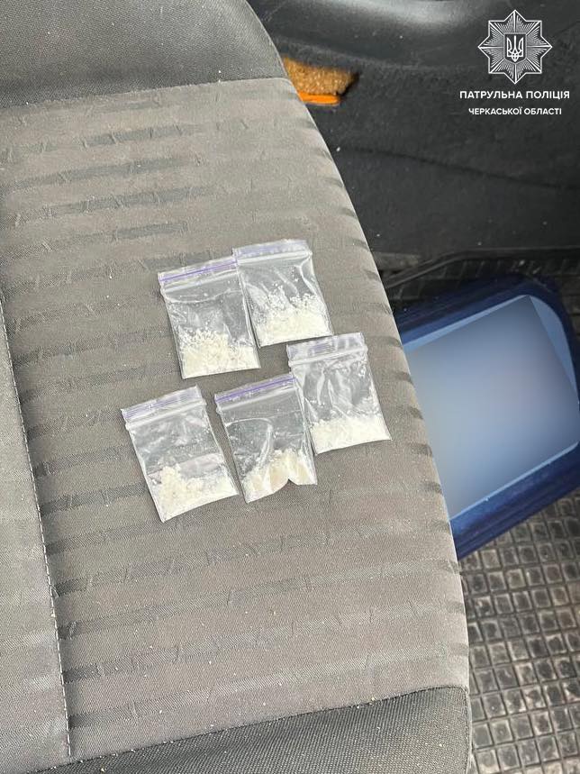 Оформлюючи адміністративні матеріали, патрульні помітили, що чоловік помітно нервував і намагався уникнути спілкування. Під час поверхневої перевірки та огляду транспортного засобу, інспектори виявили 5 пакетиків із білою порошкоподібною речовиною, ймовірно, наркотичною.