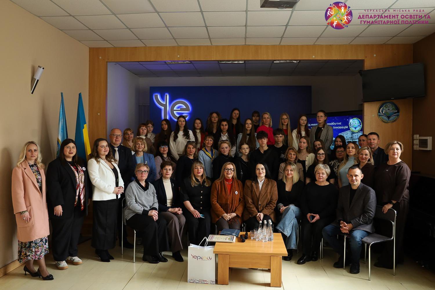 До зустрічі також долучилися заступниці міського голови Анастасія Чубіна і Марина Гаркава, директор департаменту освіти та гуманітарної політики Богдан Белов, його заступниця Надія Євчак, фахівці департаменту освіти, директори закладів загальної середньої освіти та вчителі французької мови черкаських шкіл.