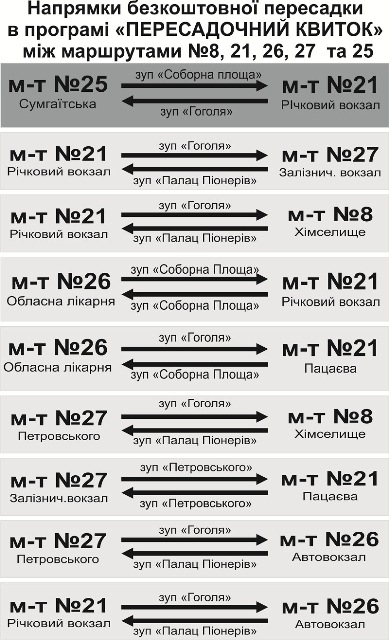 Це дозволить здійснювати безкоштовну пересадку на зупинці «Соборна площа» з маршруту №25 з Південно-західного району на маршрут №21, що курсує до Річкового вокзалу по вул. Гагаріна.