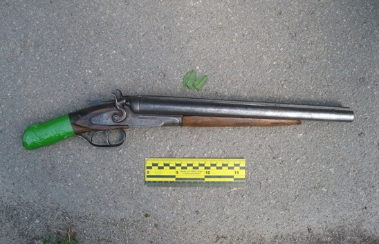 Правоохоронці, які прибули за викликом, виявили в чоловіка поліетиленовий пакет, в якому знаходився металевий предмет, зовні схожий на обріз мисливської рушниці.