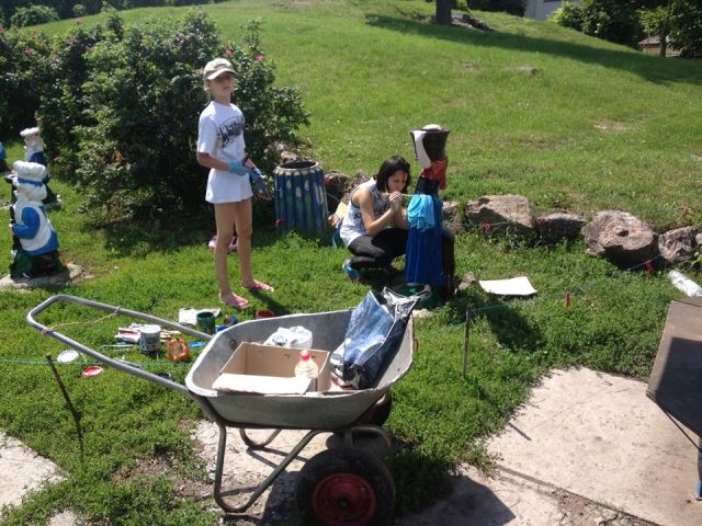 Художники розмалювали фігурки казкових персонажів, які вже кілька років прикрашають клумби парку. Зокрема, яскраві фарби нанесли на персонажів казки «Білосніжка та семеро гномів».