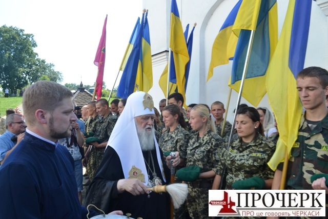 Сьогодні Святійший Патріарх Київський та всієї Руси-України Філарет завітав до Суботова на Чигиринщині, аби зустрітись та освятити військових, воїнів АТО, котрі беруть участь у паломництві святими місцями Холодного Яру.