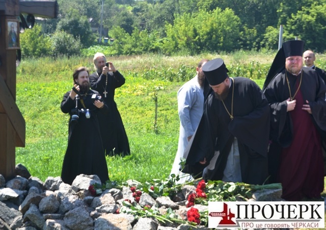 По закінченню церемонії освячення храму присутні священнослужителі та представники керівництва поклали до імпровізованої могили Калнишевського квіти.