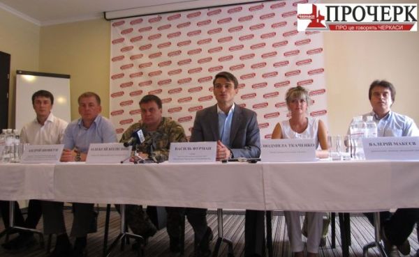 На сьогоднішній прес-конференції Василь Фурман представив п’ятірку членів черкаської команди: Людмила Ткаченко - керівник Черкаського обласного Союзу громадських природоохоронних організацій, Олексій Колісник - голова ГО «Черкаський союз учасників АТО», Андрій Шовкун - перший заступник міського голови м. Сміла, Валерій Макєєв - правозахисник, волонтер, громадський діяч, Ігор Новіцький - громадський активіст м. Тальне.