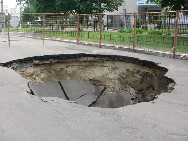 Нагадаємо, учора на по вулиці Гоголя поблизу Будинку правосуддя утворилося провалля, діаметром понад 8 метрів. Аварія сталася на ділянці, де проходить головний самопливний каналізаційний колектор. Серед причин, які називають фахівці комунального підприємства, – тривалий термін експлуатації та газова корозія верху залізобетонної труби каналізаційного колектора.