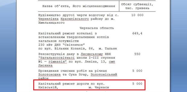 Кабінет міністрів на засіданні 3 серпня ухвалив Постанову № 543. Відповідно до неї буде проведено ремонт по вулиці Київська в Черкасах на суму 5 мільйонів гривень. Про це повідомила у Facebook директор департаменту фінансової політики Наталія Джуган у Facebook, інформує vikka.ua
